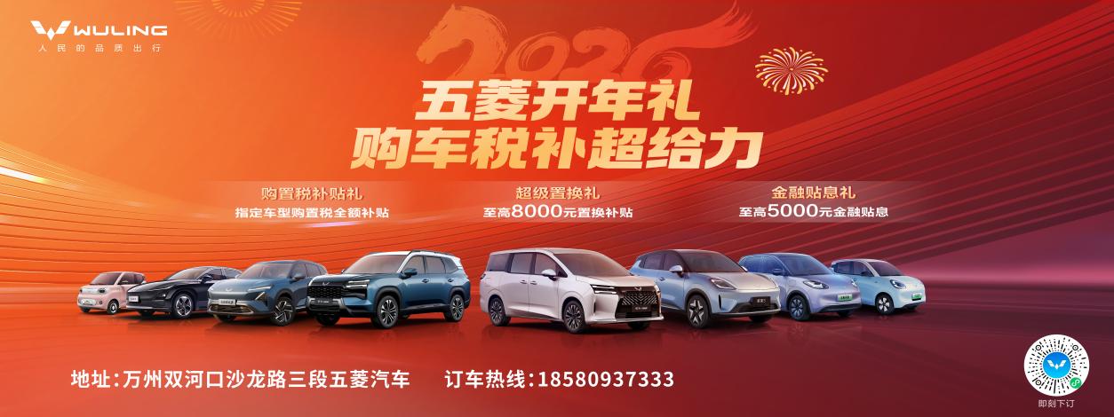 新年新选择,代步更轻松!五菱汽车亲民登陆2026年重庆市第一批新能源汽车下乡活动,旗下星光系列、缤果S、mini四门等热门车型全系出击,推出“下订翻倍抵”+“无门槛置换补贴” 组合优惠,补贴最高达4000元,让您以万元级的亲民预算,轻松拥有高性价比的纯电出行伙伴!