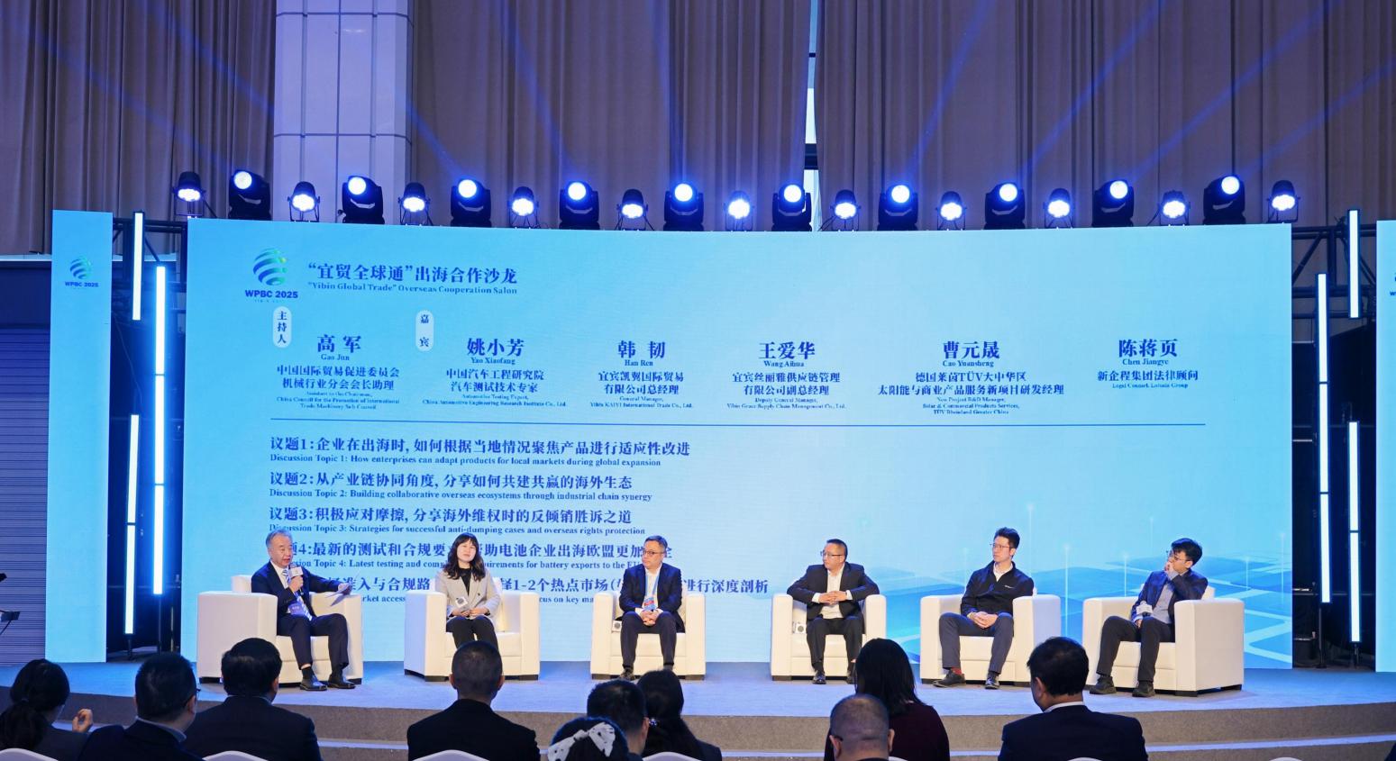 高端对话环节,邀请到中国汽车工程研究院汽车测试技术专家姚小芳、宜宾凯翼国际贸易有限公司总经理韩韧、宜宾丝丽雅供应链管理有限公司副总经理王爱华、德国莱茵TÜV大中华区太阳能与商业产品服务新项目研发经理曹元晟以及新企程集团法律顾问陈蒋页,围绕产品本地化、生态共建、贸易摩擦应对、欧盟合规路径及东南亚市场准入等关键议题展开思维碰撞,为现场企业提供了兼具前瞻性与实操性的策略建议。