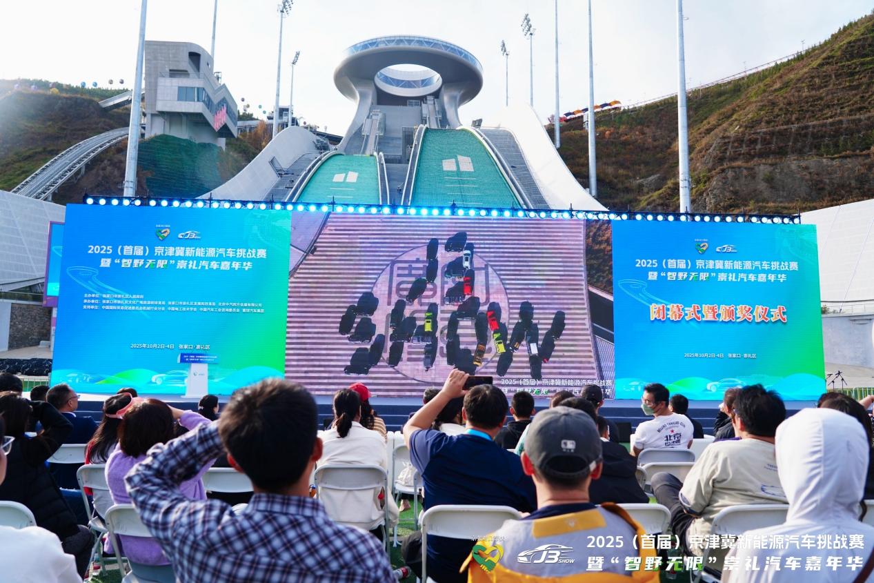 2025年10月4日,为期三天的2025(首届)京津冀新能源汽车挑战赛暨“智野无限”崇礼汽车嘉年华闭幕式在河北省张家口市崇礼区雪如意举行。闭幕式上,中国国际贸易促进委员会机械行业分会会长周卫东、北京市发展和改革委员会对口协作合作处处长邵明阳、张家口崇礼区文化广电旅游和体育局副局长韩晓玉、中国汽车工业咨询委员会副秘书长支敏、中国国际贸易促进委员会机械行业分会副秘书长刘成芳、巴东县发展和改革局副局长钟名、巴东县区域合作中心副主任向运涛、2025(首届)京津冀新能源汽车挑战赛暨“智野无限”崇礼汽车嘉年华高级顾问秦玉学、河北广播电视台驻张记者站副站长张龙、巴东县区域合作中心股长向大君、张家口兴垣体文旅运营管理有限公司总经理张力涛、巴东弘发产业发展集团有限公司副总经理李奎宁、跟我视驾/卿车熟路创始人卿钦等领导、行业专家、企业和俱乐部代表及媒体朋友齐聚一堂,共同回顾活动精彩瞬间,展望新能源汽车产业发展前景。